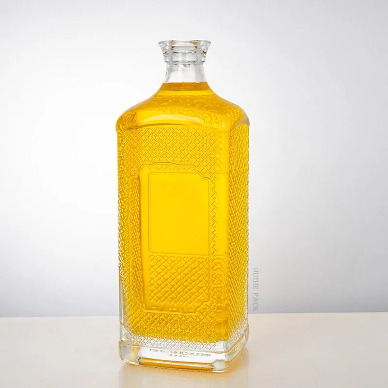 1000ML Embossed Square Glass Liquor Bottle Suit for Label