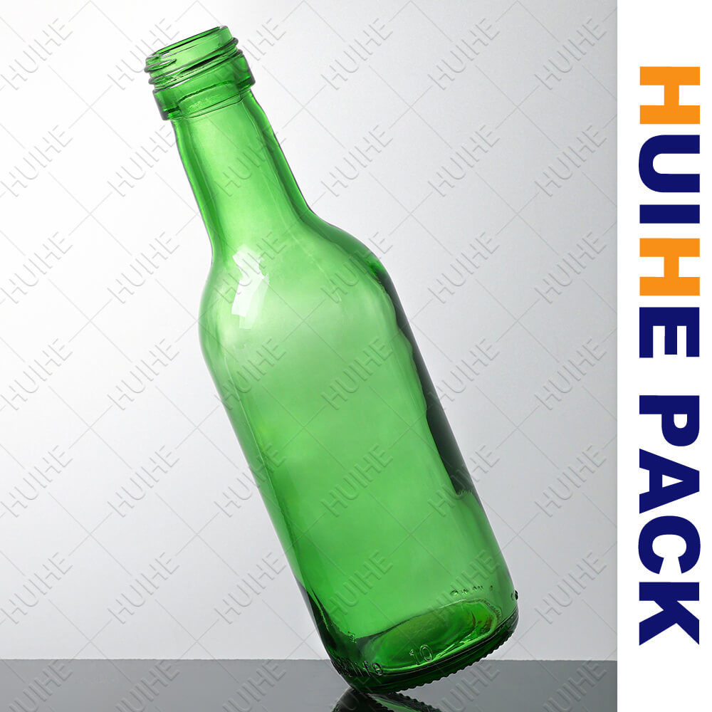 This 150ml green glass soju bottle features a sleek silhouette with a screw - top neck. It’s tailored for premium soju and similar spirits, offering a classic look that stands out on shelves.