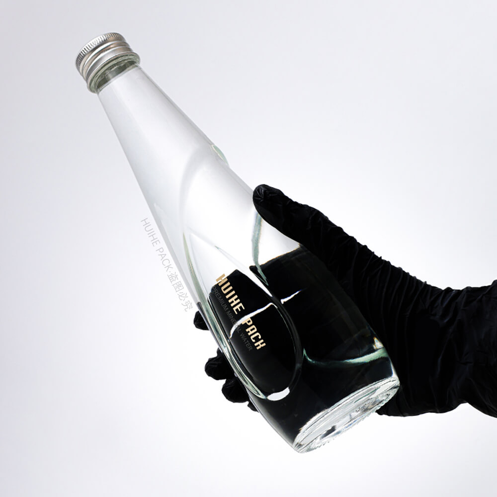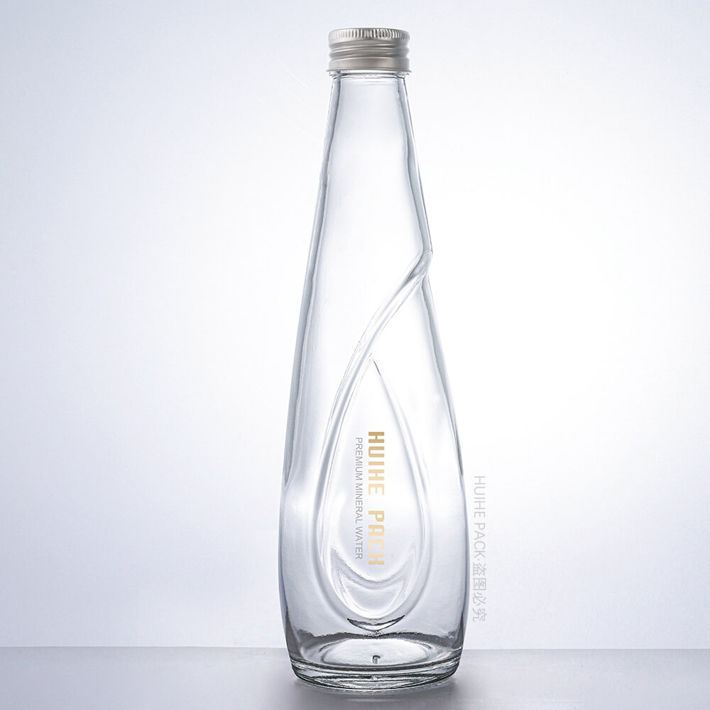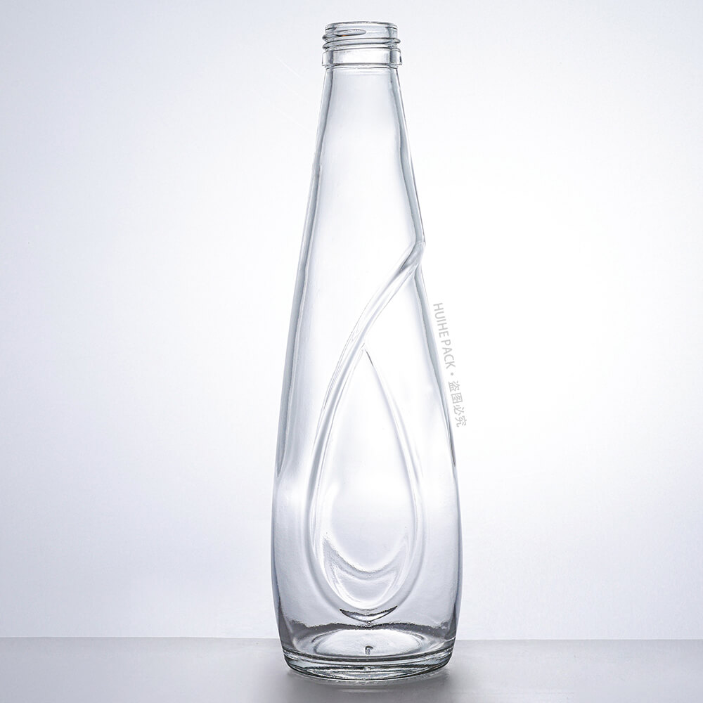 This 330ml glass water bottle features a sleek, tapered shape with a graceful curved detail on its body: it stands 227mm tall and has a 66.4mm base diameter, boasting crystal-clear glass that highlights the elegant, flowing design—ideal for high-end mineral water brands looking to add a touch of sophistication to their packaging.