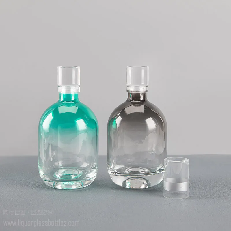 500ml Gradient coating green gray Fruit Flavored Liqueur Glass Bottle with Crystal cork stopper