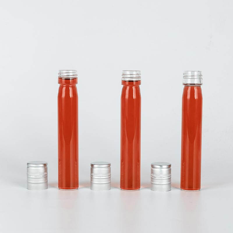 These slim glass vials (available in multiple sizes) feature a sleek, cylindrical design paired with aluminum lids—ideal for wine or spirit samples. The aluminum lid provides a safe seal and helps preserve the taste of the wine, ensuring your products stay fresh. Beyond spirits, the glass vials create a complete look for packaging products such as liquors, oils, syrups, wine, coffee, and more, adding versatility to your packaging lineup.