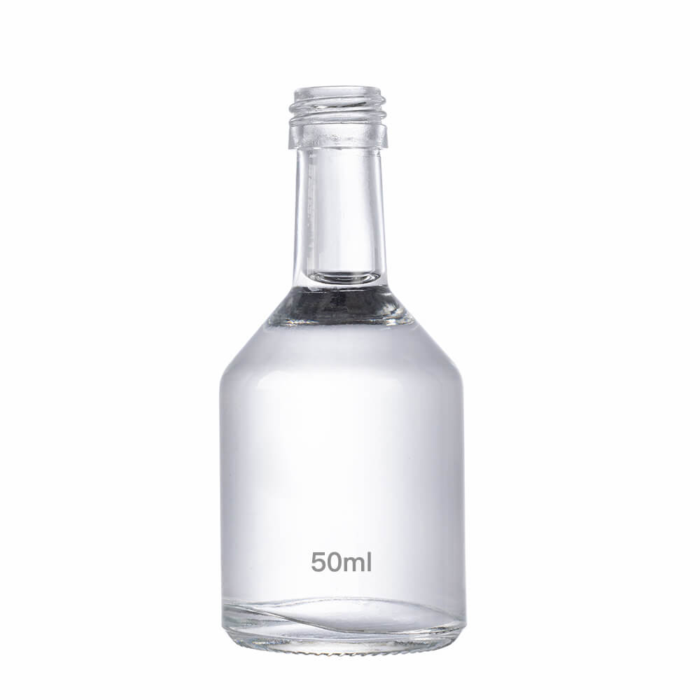 This 50ml mini glass liquor bottle from Huihe features a sleek, transparent design with a tall neck, perfect for spirit samples, premium tastings, or promotional offerings, showcasing liquids clearly and enabling impactful branding. Crafted from high-grade glass, it undergoes 100% inspection to ensure stable quality, no breakage, and leak-free sealing.
