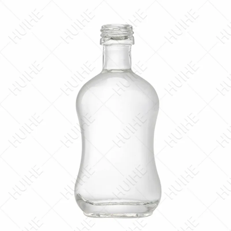 This 50ml mini glass liquor bottle from Huihe features a unique curvaceous silhouette with a screw-top neck, ideal for spirit samples, premium tastings, or promotional offerings, showcasing liquids clearly and enabling standout branding. Crafted from high-grade glass, it undergoes 100% inspection to ensure stable quality, no breakage, and leak-free sealing.