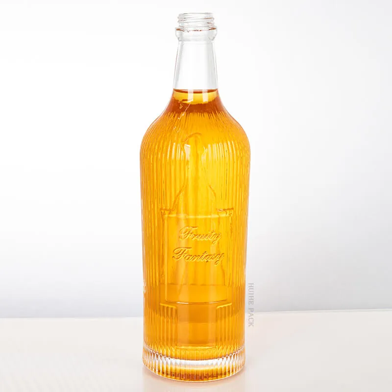 Our glass liquor bottle boasts a distinctive and eye - catching design. The body of the bottle is vertically ribbed, with the ribs running parallel from the base to near the neck, creating a textured and elegant look. These ribs not only add a touch of sophistication but also provide a better grip, reducing the chance of slipping.