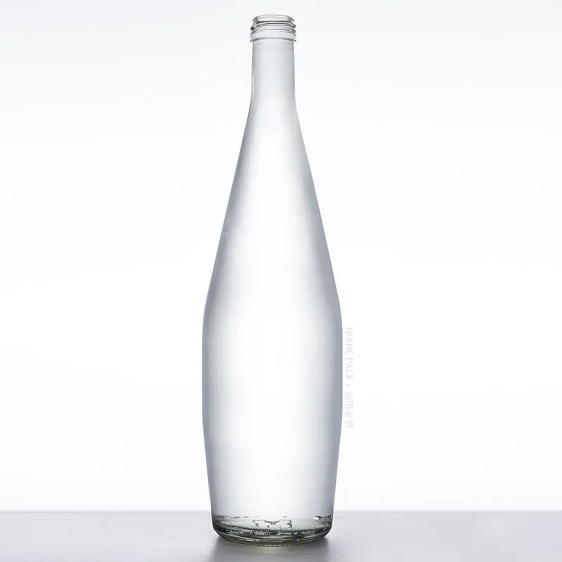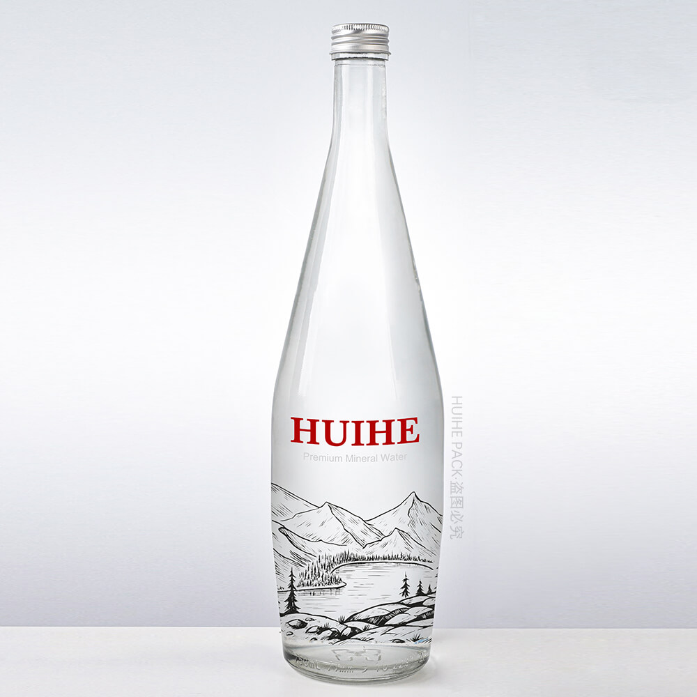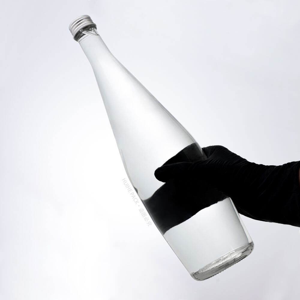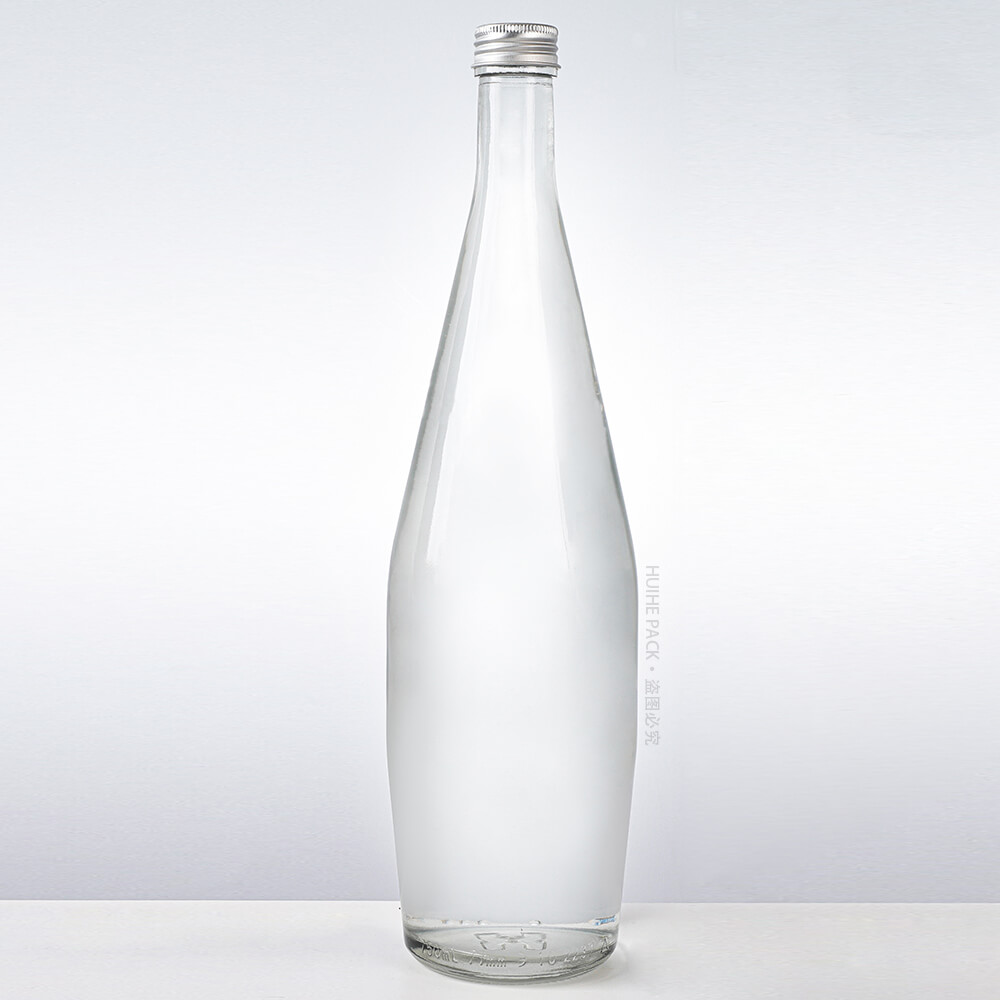 This 750ml glass water bottle features a sleek, elongated tapered silhouette: it stands 313mm tall with an 82.8mm base diameter, boasting a smooth, crystal-clear glass body that exudes understated luxury—perfect for high-end mineral water brands aiming to elevate their product’s premium appeal.