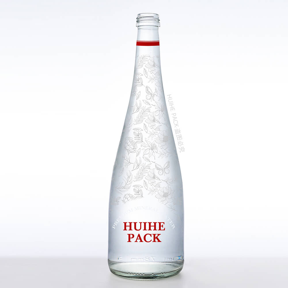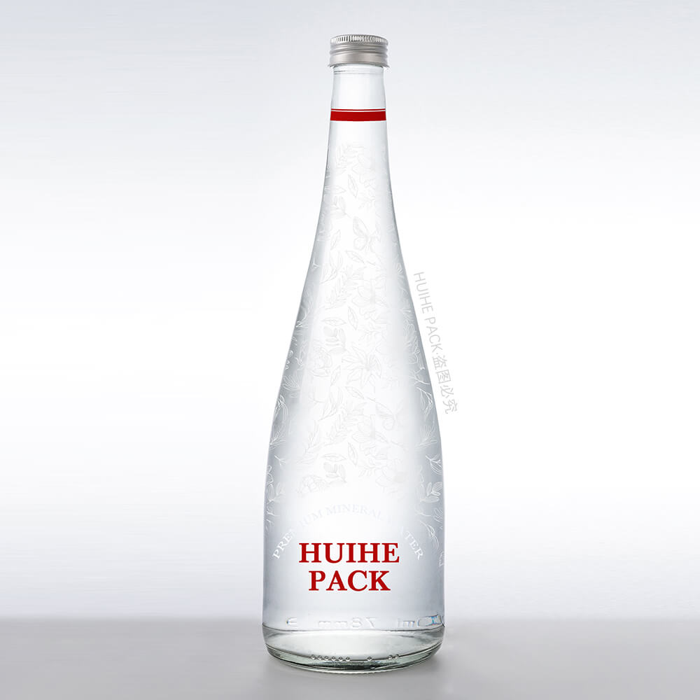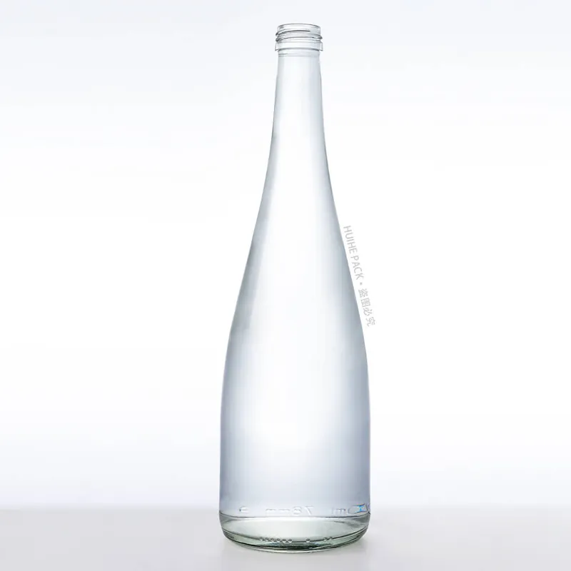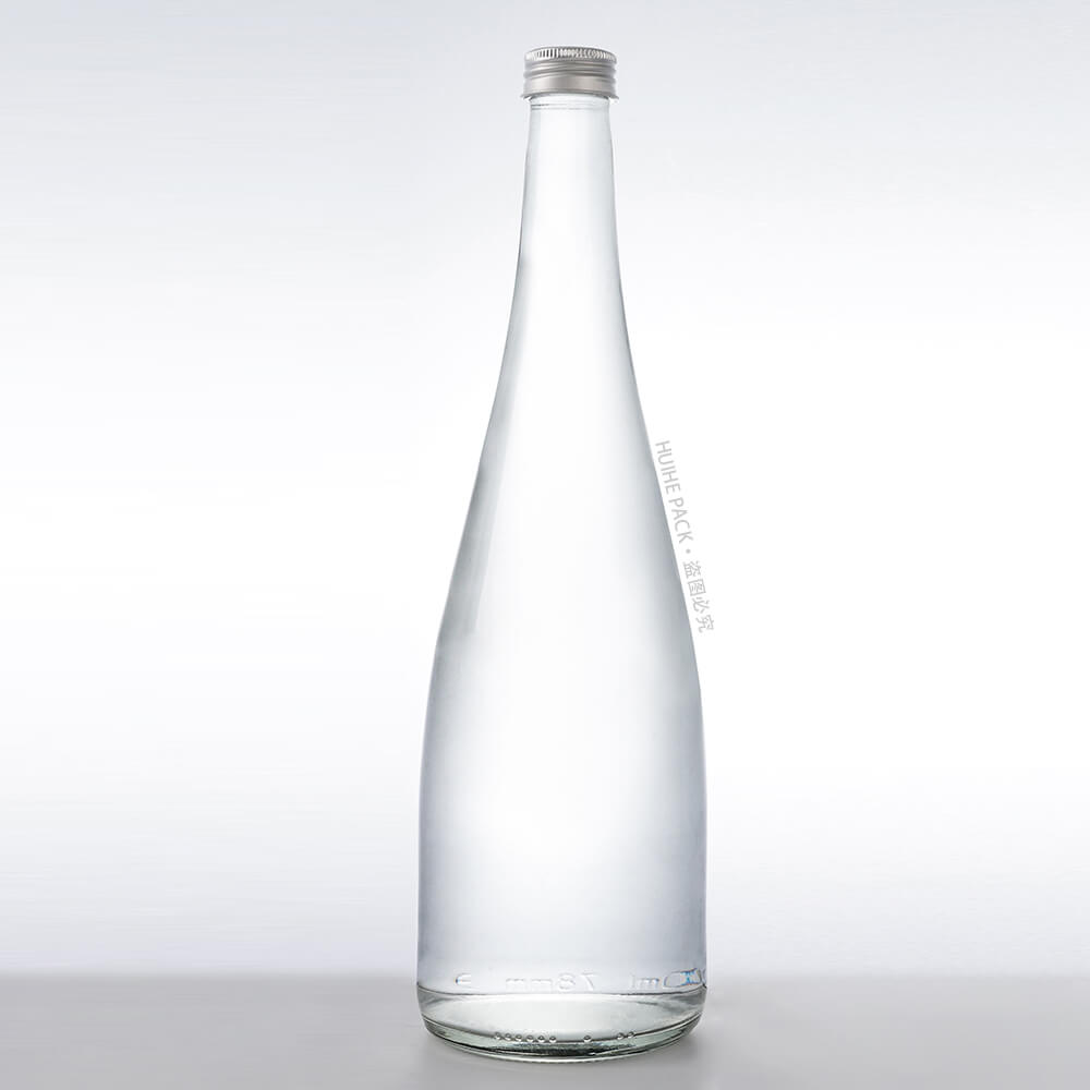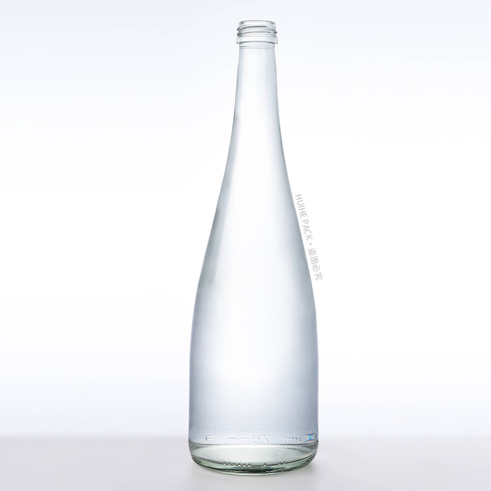This 750ml glass water bottle features an elegant, elongated tapered shape: standing 305mm tall with an 87.5mm base diameter, its sleek, gradually widening silhouette and crystal-clear finish exude a refined, upscale vibe—ideal for premium mineral water brands aiming to elevate their product presentation.