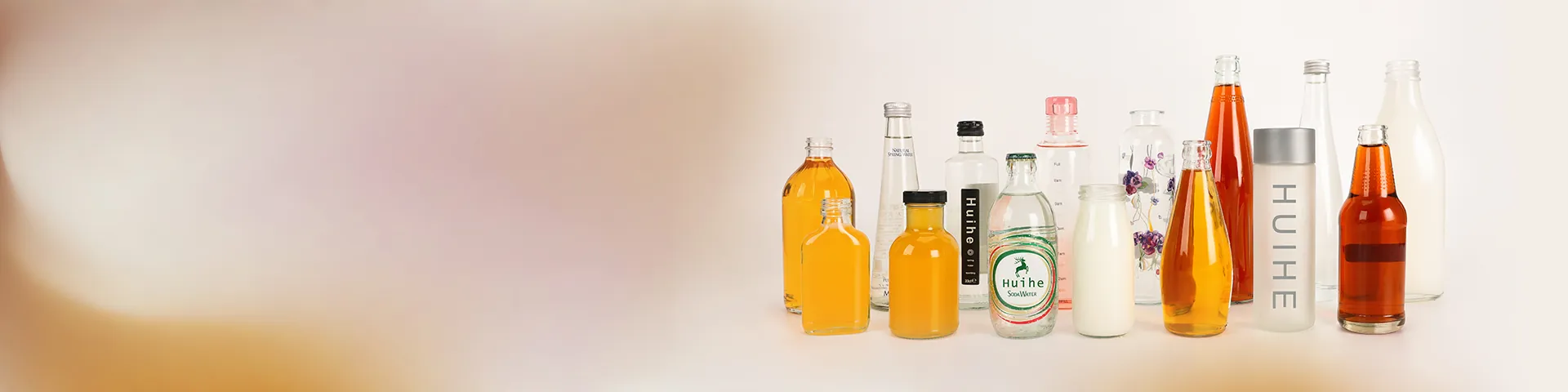 Glass beverage bottles are one of the high-end beverage packaging containers. HUIHE wholesales and customizes high-quality glass beverage bottles, providing one-stop beverage packaging services for beverage brands and manufacturers. The application of glass bottles in beverage packaging is mainly reflected in glass water bottles, carbonated glass beverage bottles, juice glass bottles, energy drink glass bottles, dairy glass bottles, coffee glass beverage bottles, kombucha and other tea glass bottles, especially suitable for hot filling and fizzy drink. The capacity of glass beverage bottles is very diverse. In addition to the conventional 500ml, 750ml, and 1000ml beverage bottles, there are more optional capacities such as 250ml, 300ml, and 330ml, etc. Regarding the bottle shape of beverage bottles, round beverage bottles are more common, and others are more special-shaped bottles. As one of the leading glass bottle manufacturers and suppliers in China, HUIHE not only supports customized personalized beverage glass bottle shapes, but also provides deep processing services for glass bottles, such as frosting, coating, screen printing, engraving, etc. for surface decoration to enhance the grade and brand image of beverage packaging. In recent years, high-end mineral water is very popular, including the glass bottles used in it, such as Voss water bottle, Evian water bottle, etc. If you need, please send us an inquiry and we will communicate with you as soon as possible.
