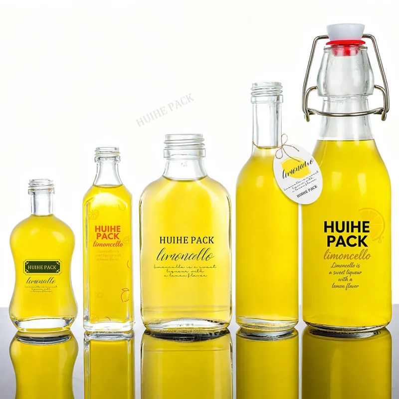 The Limoncello bottle is a container specifically designed to hold and showcase Limoncello, an Italian lemon liqueur. It typically features a sleek and elegant design, often with a tall, slender silhouette. Huihe Limoncello bottle is made of high-quality super flint glass, allowing the vibrant yellow color of Limoncello to shine through and enticingly showcase the liqueur. Here are some of Huihe's classic limoncello bottles: