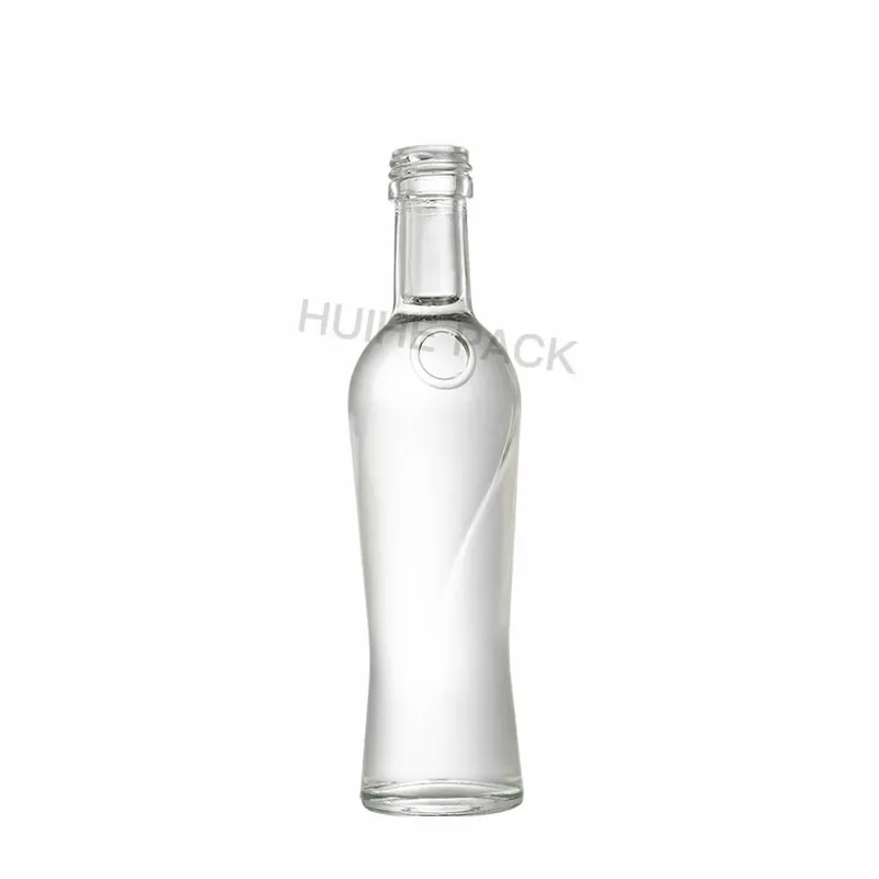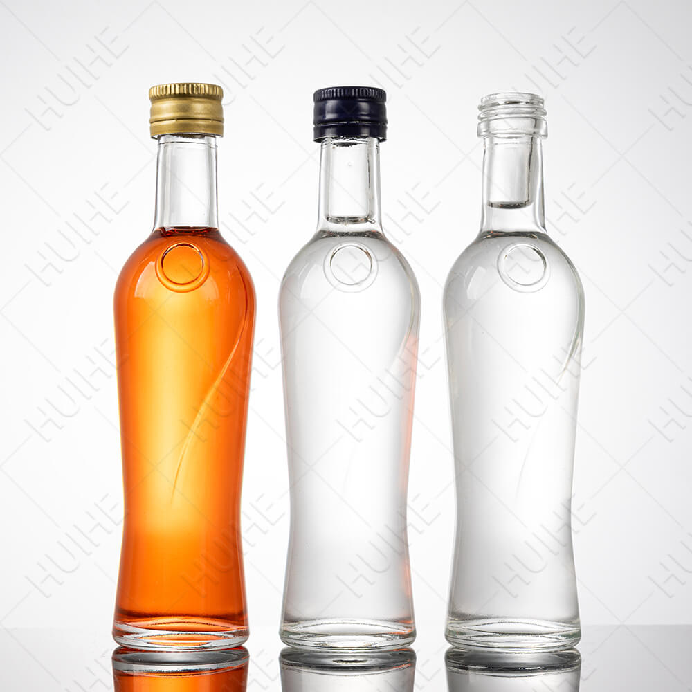This 50ml mini glass liquor bottle from Huihe features a distinctive curved silhouette with a transparent finish and screw-top neck, ideal for spirit samples, premium tastings, or promotional campaigns, offering unique branding potential and clear product display. Crafted from high-grade glass, it undergoes 100% inspection to ensure stable quality, no breakage, and leak-free sealing.