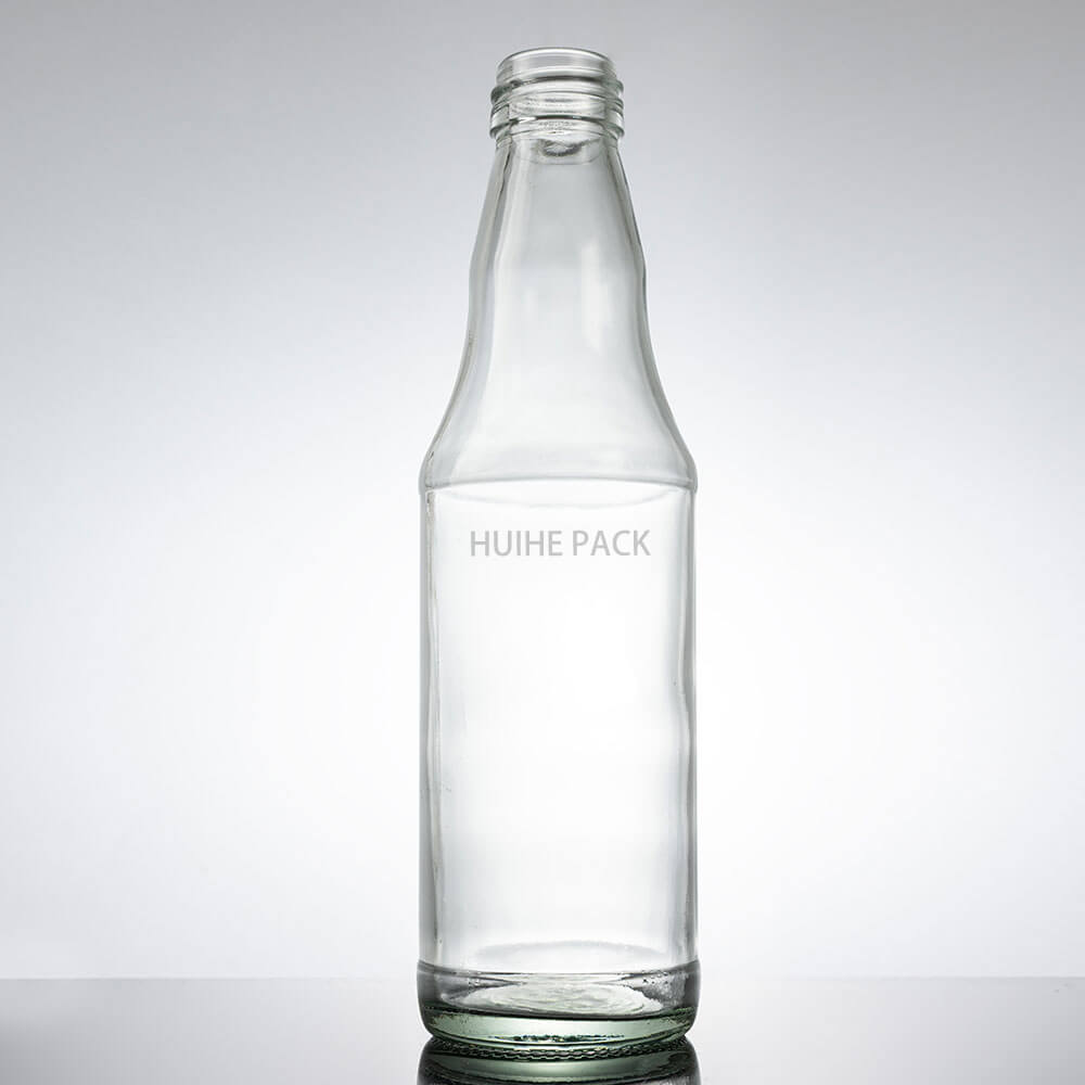 This premium glass water bottle has a 270ml capacity, standing 194mm tall with a 52mm body width. It features a sleek, tapered silhouette: a narrow threaded neck widens smoothly into a broad, angular shoulder, which connects to a straight, slender body that maintains a uniform width down to the stable base. Its crystal-clear glass vividly showcases the purity of contents, making it an ideal choice for high-end mineral water brands and premium beverage lines.