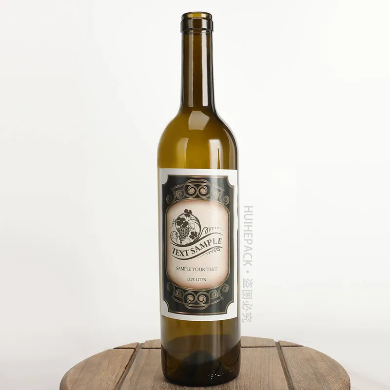 Wine bottles come in many shapes, but the most classic is this Bordeaux bottle. The Bordeaux bottle is taller, with smooth lines and a thin neck, giving it a simple yet elegant look. The label on the red wine bottle carries a lot of information about the wine, such as the appellation, vintage, winery name and so on. Exquisite label design not only enhances the grade of wine, but also allows people to feel the deep heritage of wine culture while savoring fine wines. HUIHE PACK provides customized service, if you need customized labels for your brand, just contact us!