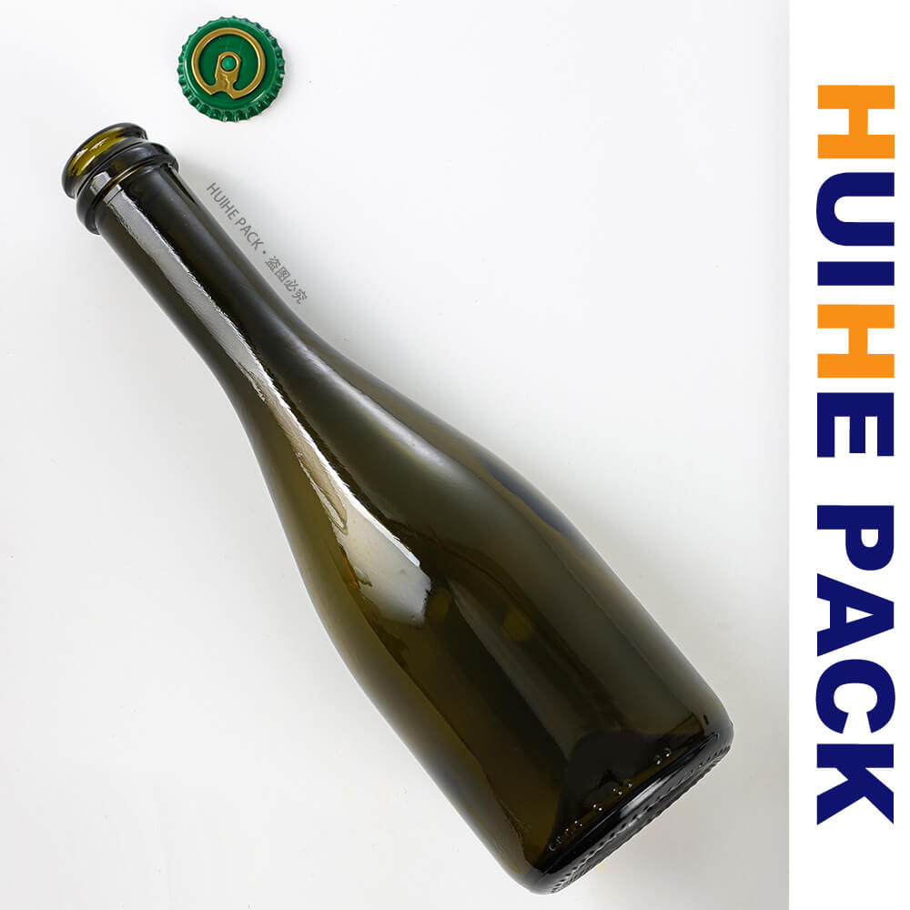 750ml Dark Green Curved Bulb Glass Cider Bottle with Crown Cap