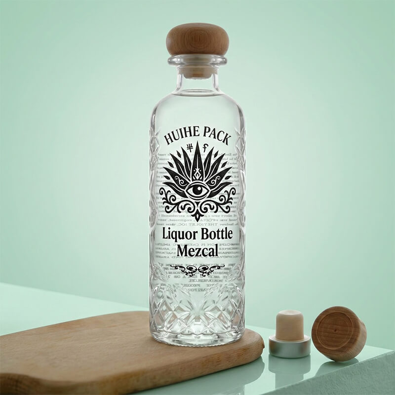 Lyft ditt spritvarumärke med våra premiumglasmezcalflaskor, designade för exceptionell presentation och hållbarhet. Tillverkade av högkvalitativt glas med invecklade präglade mönster, dessa flaskor har en sofistikerad estetik som förbättrar din produkts premiumpositionering. Den eleganta träkorkförslutningen ger en touch av naturlig sofistikering samtidigt som den säkerställer optimal tätningsintegritet.